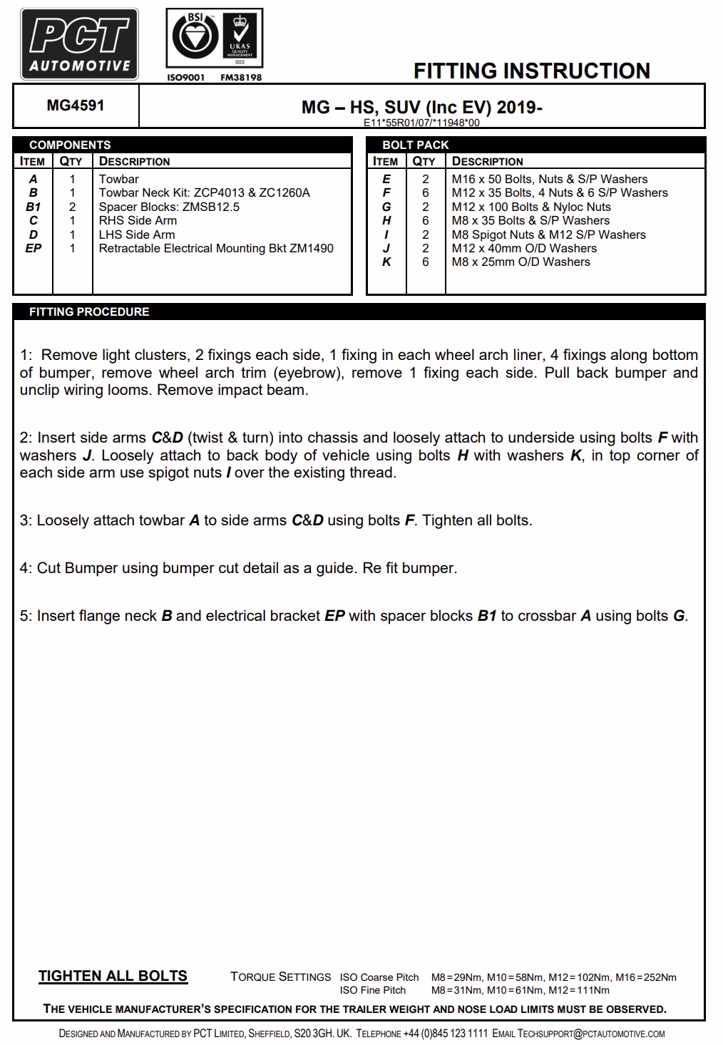 - Supplied with all parts needed to attach the towbar to this vehicle